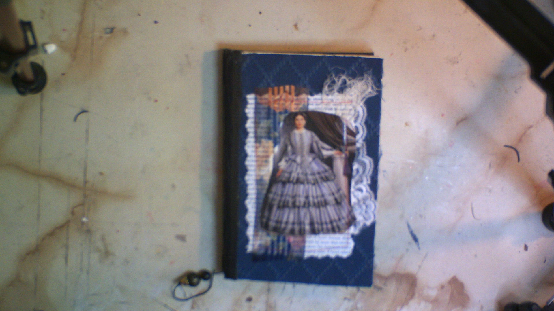 Measuring 6″ x 9″, this beautifully handcrafted journal includes 104 pages filled with a mix of coffee-stained, vintage, and specialty papers. It also features inserts and tags for added charm and creativity, making it perfect for journaling, memory keeping, or gifting. The cover showcases a vintage fabric design with a lady in a gray dress, giving it timeless elegance.
